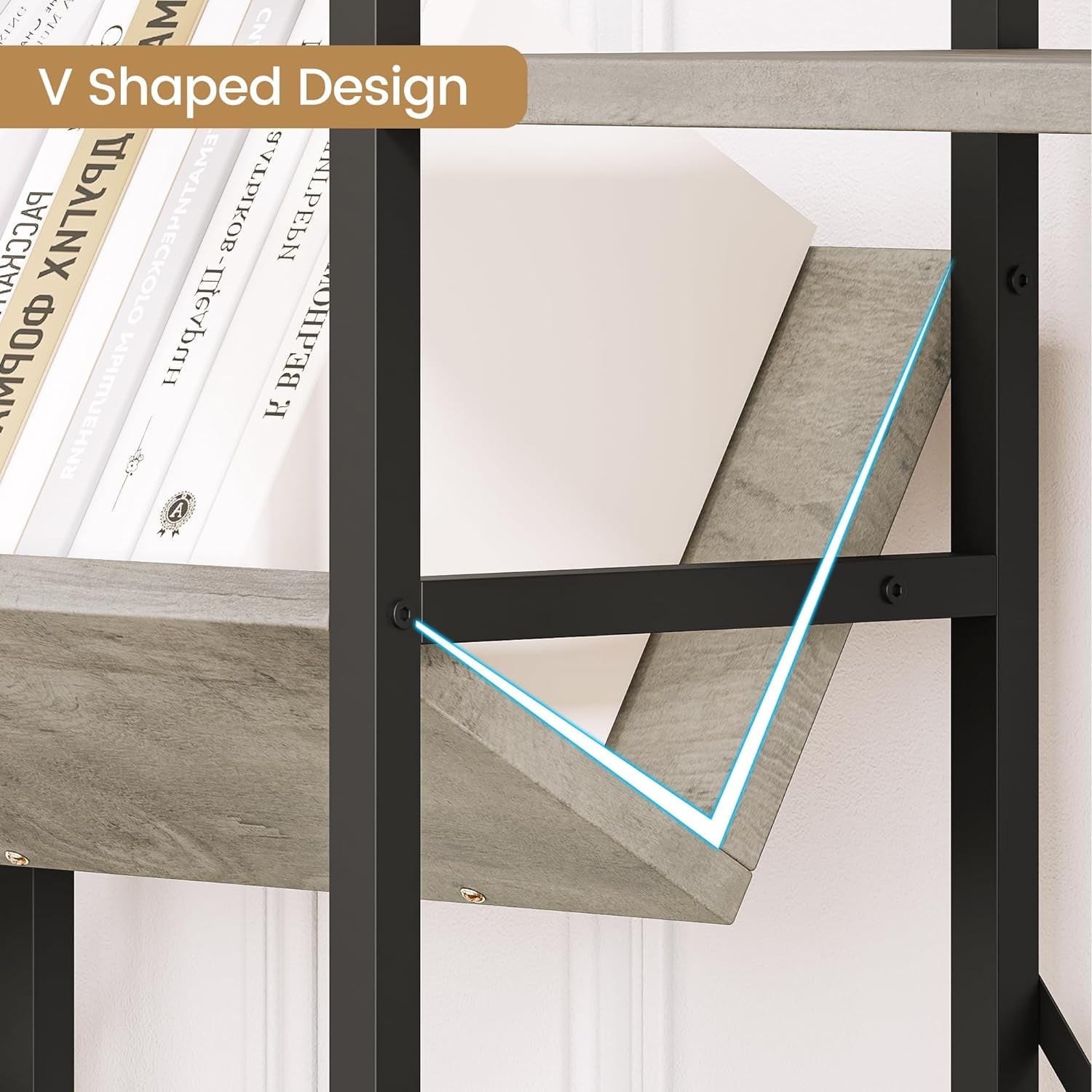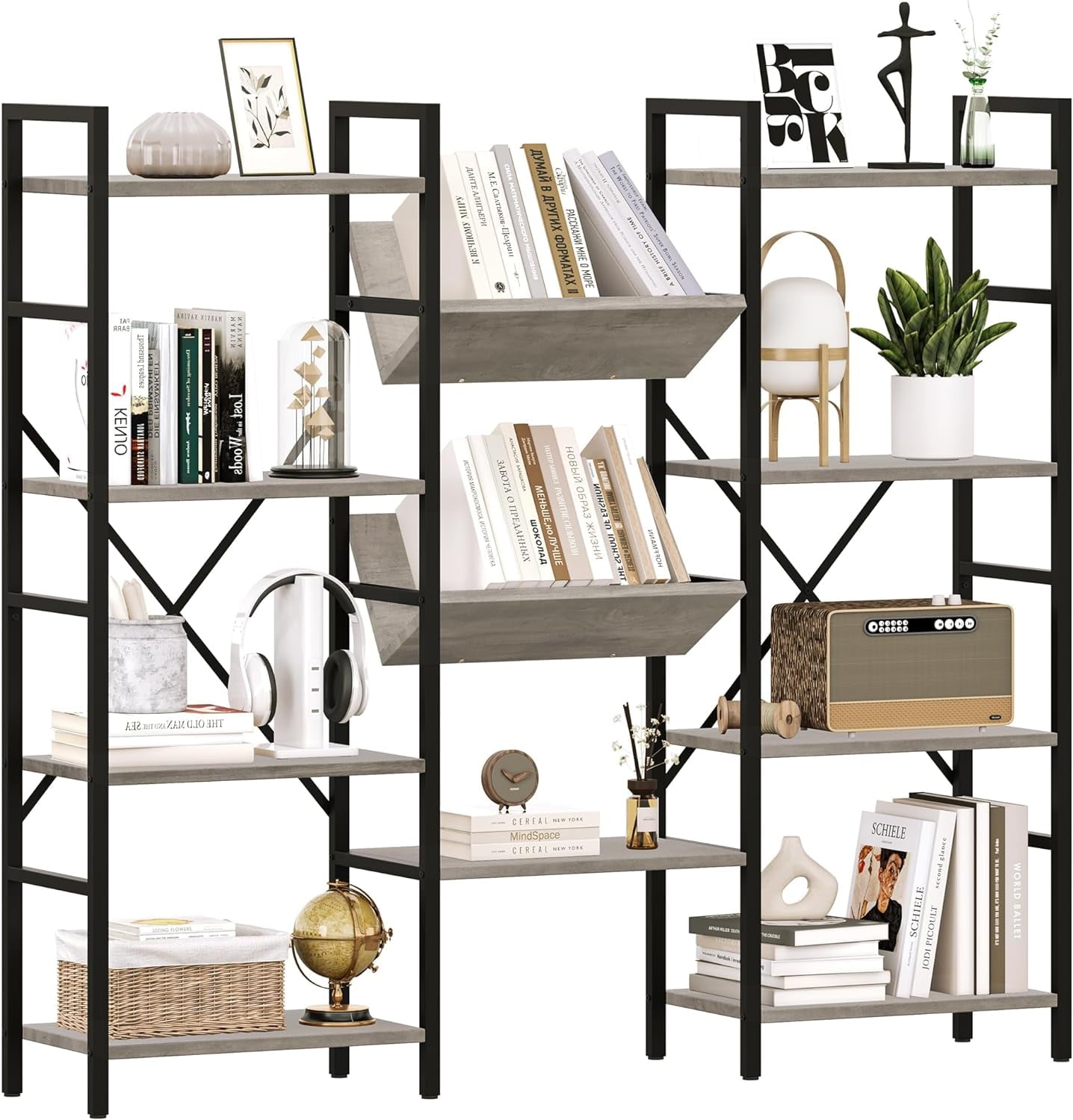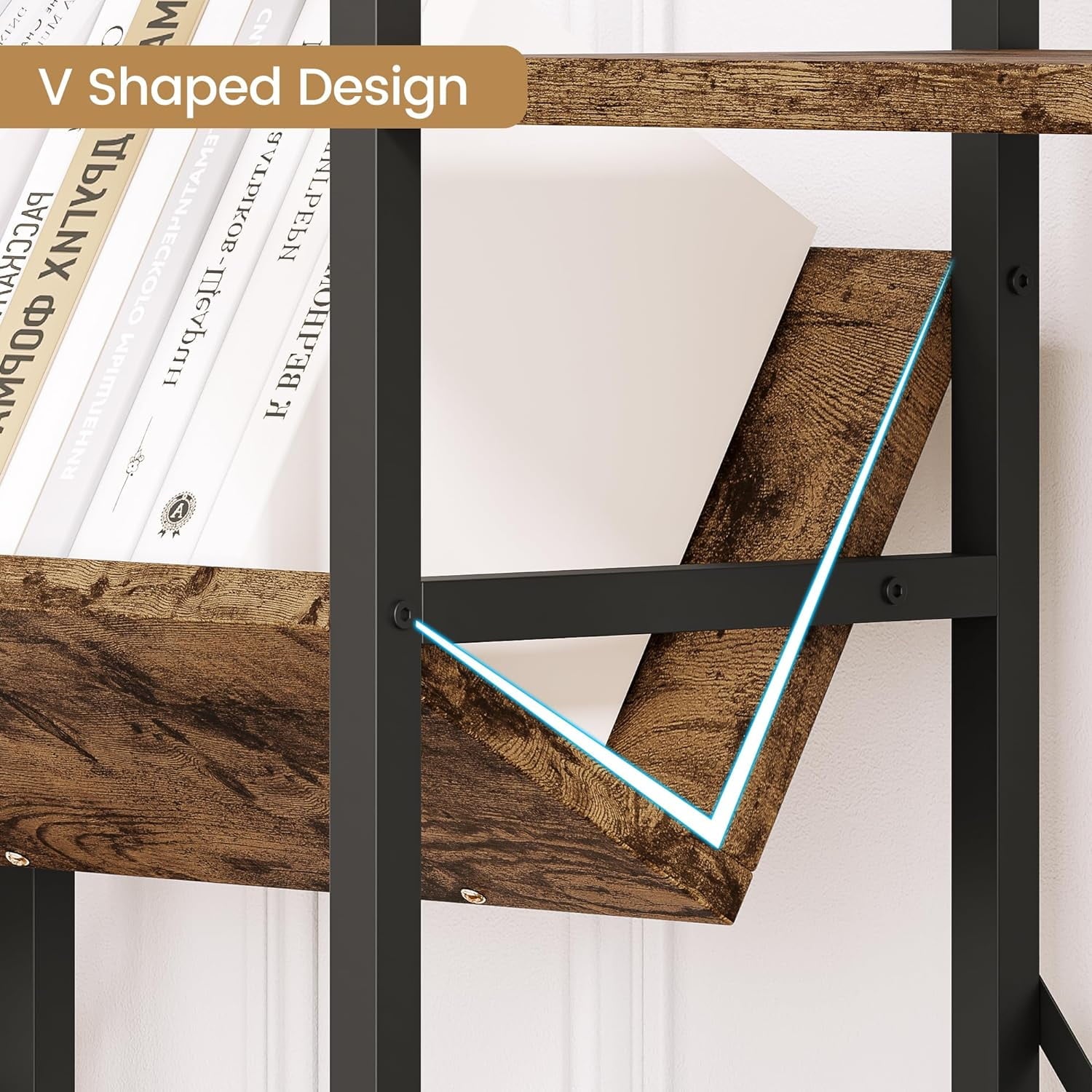 NEILA Triple Wide 4-Tier Bookshelf Bookcase with Open Display Rack V-Shaped Storage Shelf, Large Book Shelves with Metal Frame & Wood Top for Living Room, Bedroom, Home Office, Rustic Black
