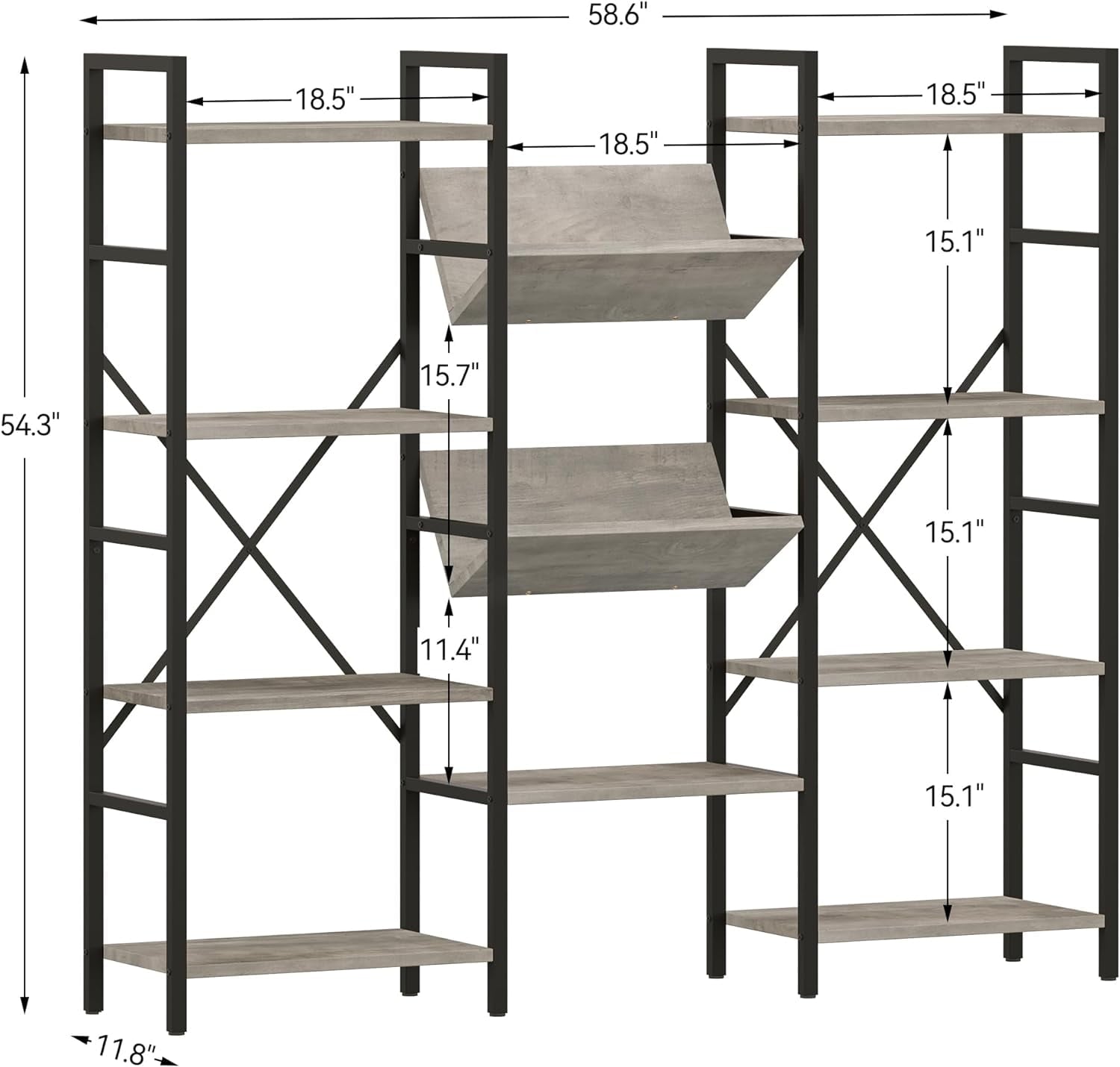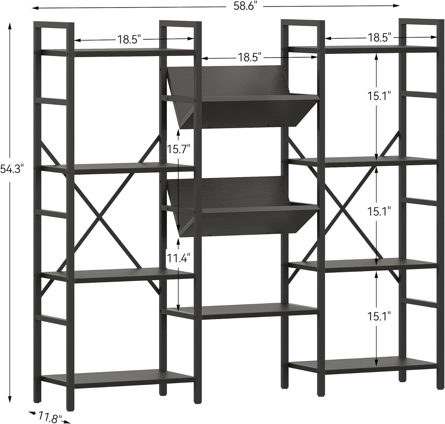 - Large Book Shelf for Storage: This tall and wide bookshelf features 4 tiers of spacious storage shelving that offer ample space for storing and displaying. The large bookcase measures 54.3" x 58.6" x 11.8" (H x L x W) with 15.1" between each tier, which maximizes vertical space for all of your daily needs and easily fits narrow and corner spaces.