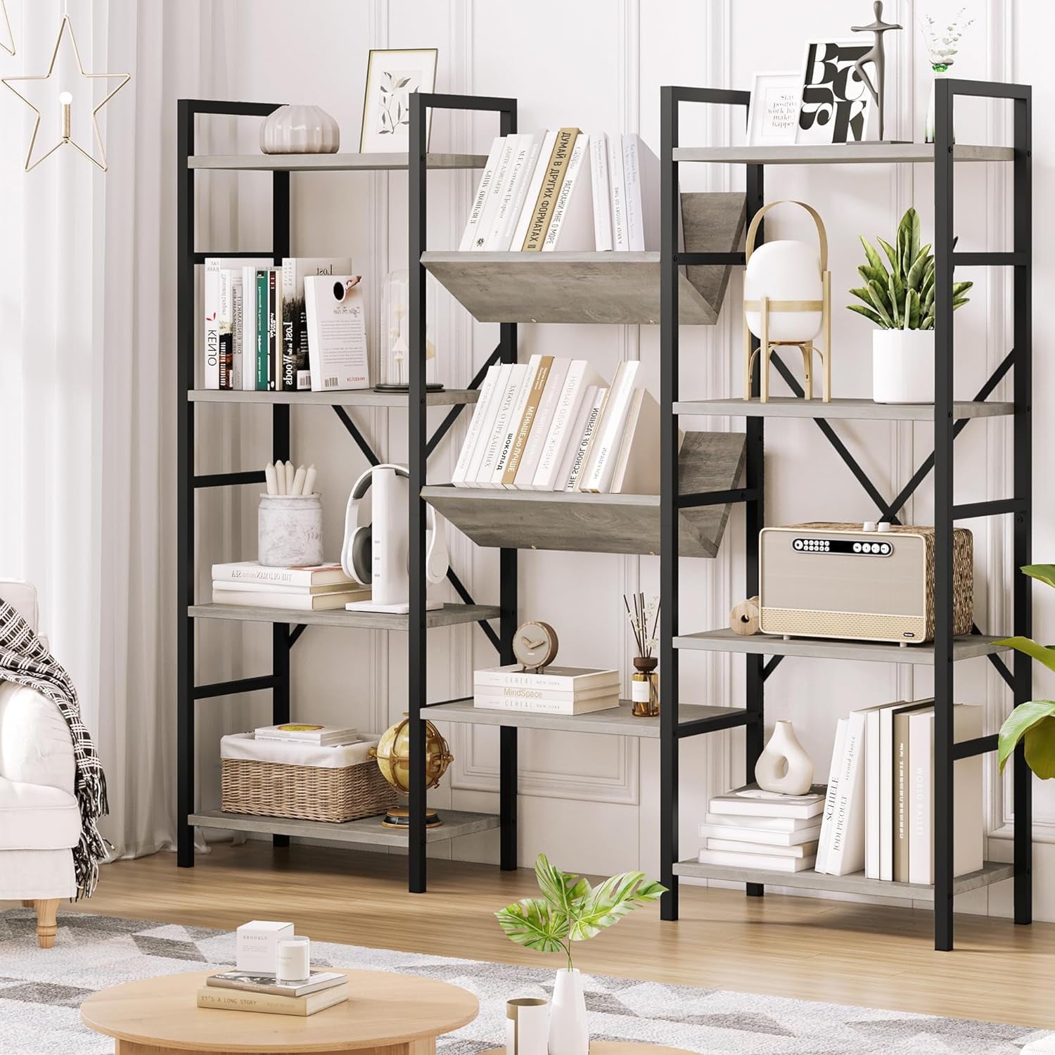 2.Spacious Storage Space: Each spacious open shelf provides ample storage space, allowing you to display and organize books, decorations, collectibles, and more, creating a personalized atmosphere in your space.