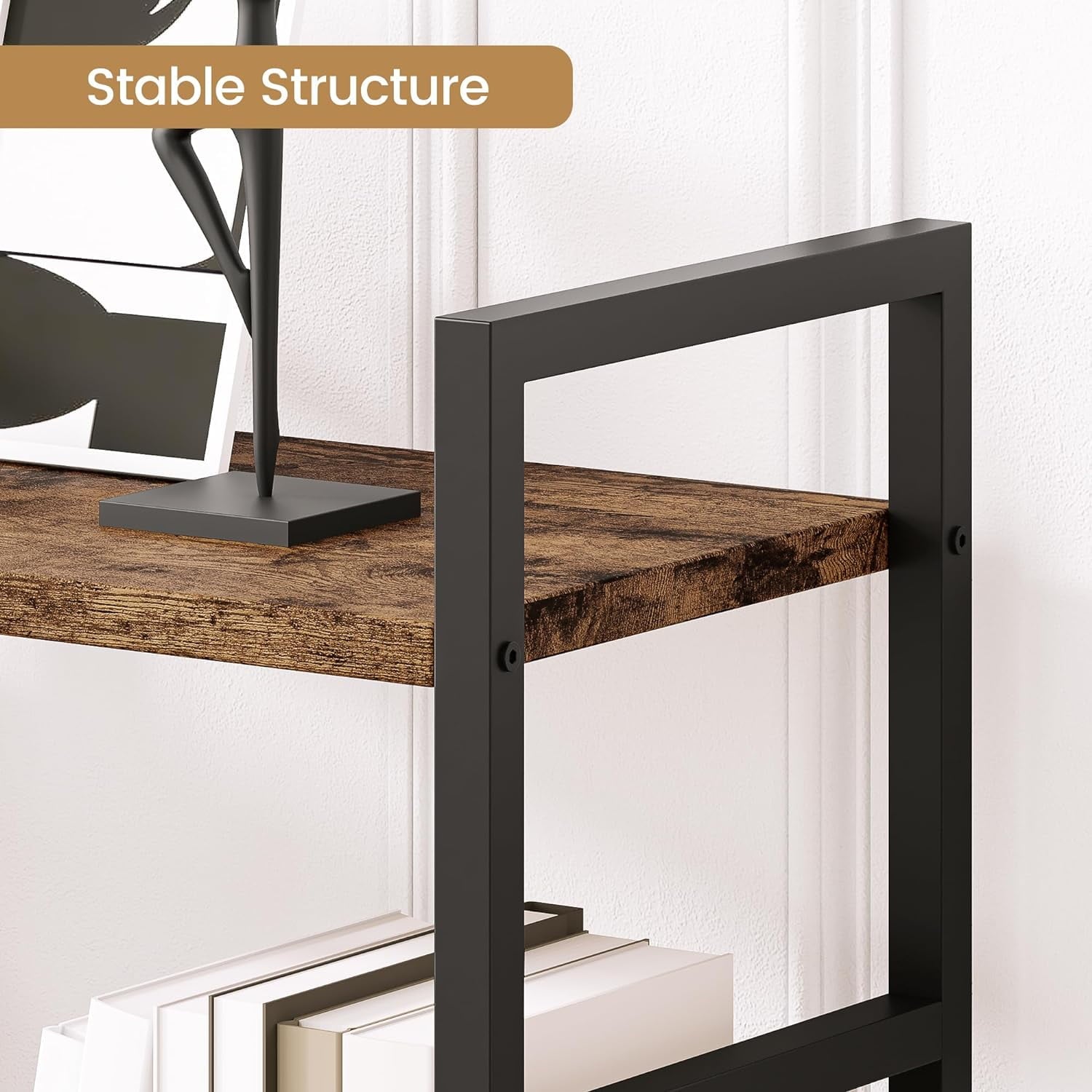 3.Sturdy and Durable Structure: Crafted with high-quality metal frame and solid wood, this bookshelf offers excellent stability and durability. Each shelf has a maximum weight capacity of 70 pounds, ensuring the safe and organized placement of your items.
