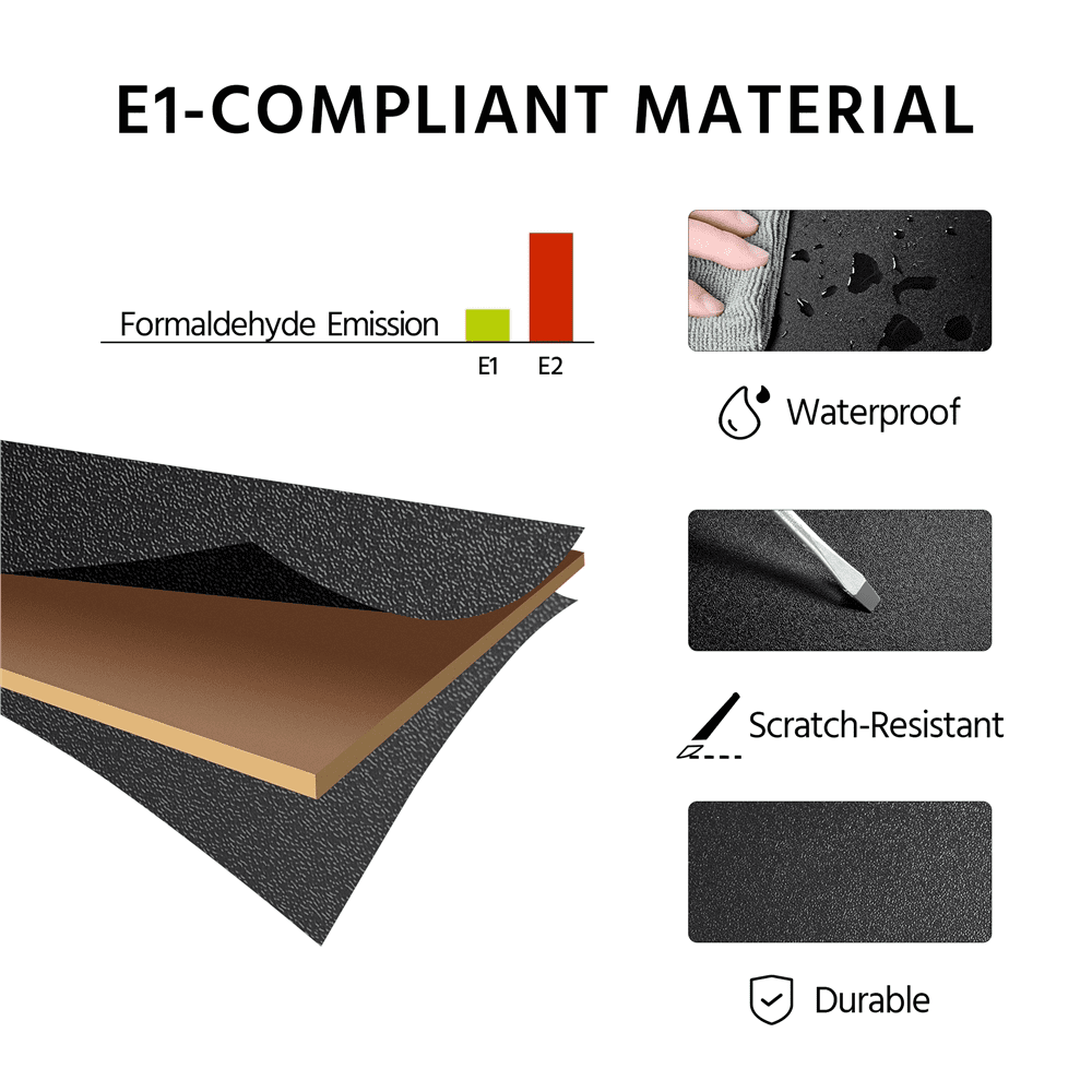 This durable laptop desk table with power outlet is made of CARB P2 particle board, durable and solid. Coated with electrostatic spraying powder paint in silver finish, it is elegant and attractive. The comprised elevated shelf, drawer and 2 shelves are perfect for storing and displaying. Two of the durable casters are lockable for safety stability and mobility. With premium PVC laminate veneer, this rolling laptop desk is scratch-resistant and water-proof. It is eligible for being used as a laptop table, writing desk or as a dining table, practical and multi-functional. Its simple and stylish design is compatible well with any kind of your decoration d¨¦cor, easy to assemble under the manual enclosed.